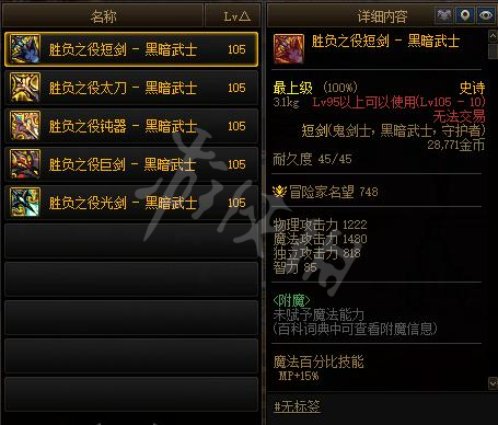 dnf勝負之役武器只有寂靜城和貴族機要能出。