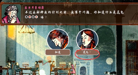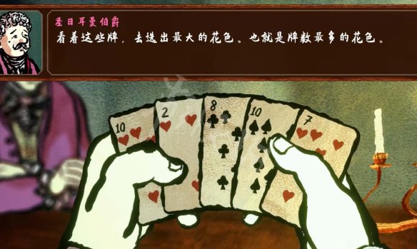 繼續進行對話後伯爵提出要讓你和他出老千,方法是通過倒酒時窺視對手手牌,再擦桌子來傳遞信息。