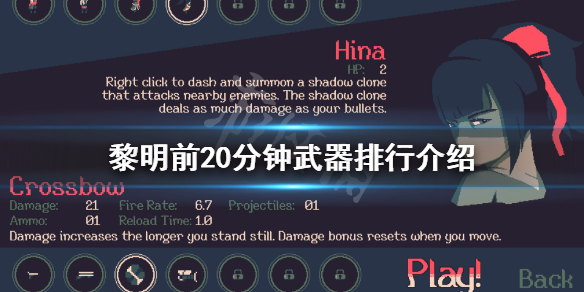 黎明前20分鐘遊戲中,狩獵這個巢穴里不斷增生的克魯蘇風魔物,好讓你能平安渡過這個晚上。從各種升級中進行選擇,建造你獨一無二的強大技能樹。解鎖各種職業的角色與擁有獨特能力的眾多武器。許多小夥伴不知道遊戲中哪些武器比較好用,下面小編就帶來黎明前20分鐘武器排行介紹,一起來看看吧。