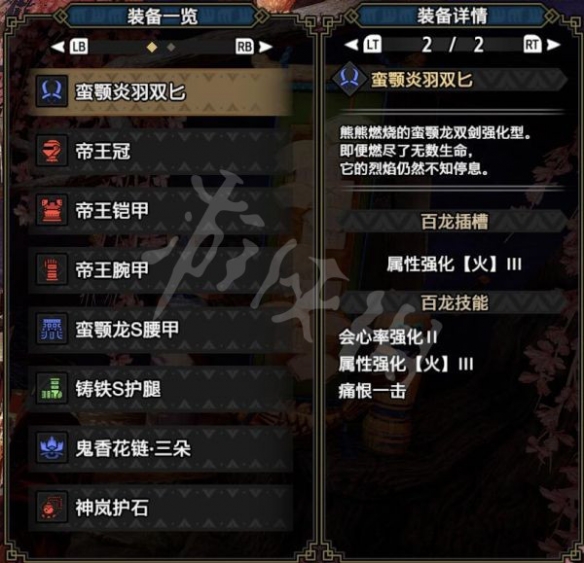 這套就是火屬性畢業配裝,沒有心眼流,因為弱火怪的弱點都很多