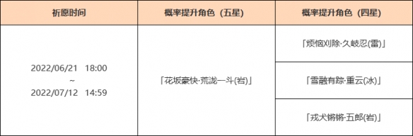 活動期間,限定五星角色「花坂豪快·荒瀧一斗(岩)」的祈願獲取概率將大幅提升!