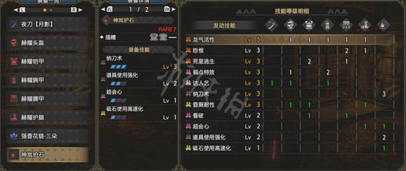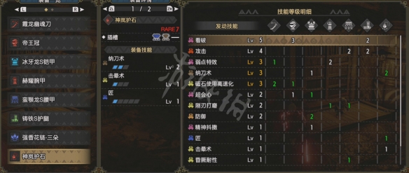 百龍客制攻擊,護石最好是 納刀2S32,像我是納刀1的所以超心會少一級。護石孔位是S22的也不要緊,把手部換成怨虎龍即可。