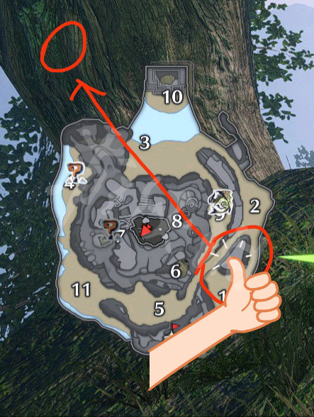 圈起來的這個高地探索區域上有個被石頭堵住的洞口,用爆彈炸開就能下去一個深坑,裡面有個大翔蟲可以用,一個飛完了空中會有第二個等著你接,一直按使用鍵來空中接力, 會沿著箭頭一路飛到畫圈地方的一個隱藏小島。
