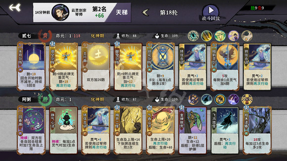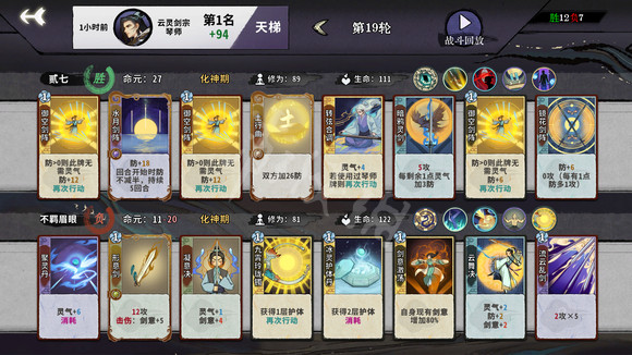 這個卡組比較靈活,如果天賦拿到靈氣+1就用第一種, 沒有就用第二種,理論上第二個圖我是能打過對面的,只需要吧後三張換成御空,境花,御空即可。