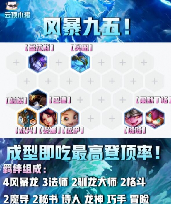 目前的s7賽季版本不少玩家嘗試出了不少的強勢陣容,比如龍神、怒翼等等,這里給大家整理了玩家“雲頂小豬”總結的一套雲頂之弈風暴九五陣容運營思路分享,就是運營遊戲一些難,感興趣的玩家一起來看下吧。
