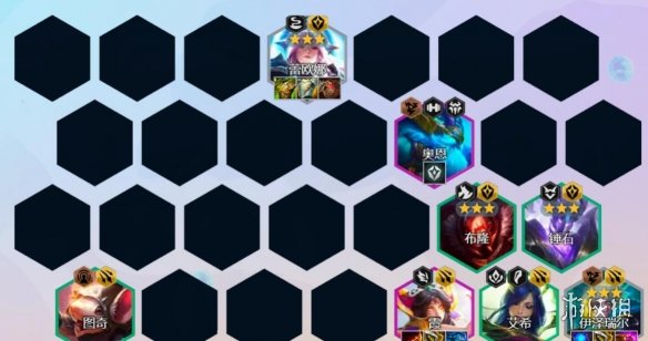 5階段:7人口如果有護衛轉或者射手轉的情況下,優先開出4護衛4射手羈絆,這對中期是質的提升。如果沒有可以在4護衛的基礎上補充奧恩開2風暴羈絆,風暴對於這套沒有控制的陣容來說非常重要。