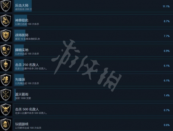 以上就是關於騎士精神2成就達成條件的簡單介紹,對各項成就解鎖條件還不怎麼了解的玩家不妨先大概的看下上面的成就截圖,希望對大家游戲有幫助。