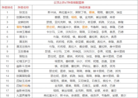 以上就是雲頂之弈S7陣容搭配圖表分享,想要了解更多相關攻略的小夥伴可以持續關注,這里每天會為大家推送最新最全的攻略,一定不要錯過哦。
