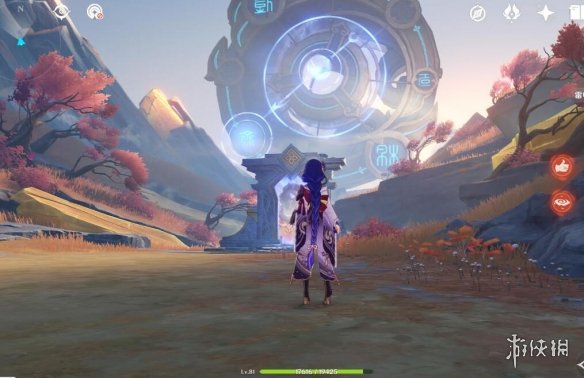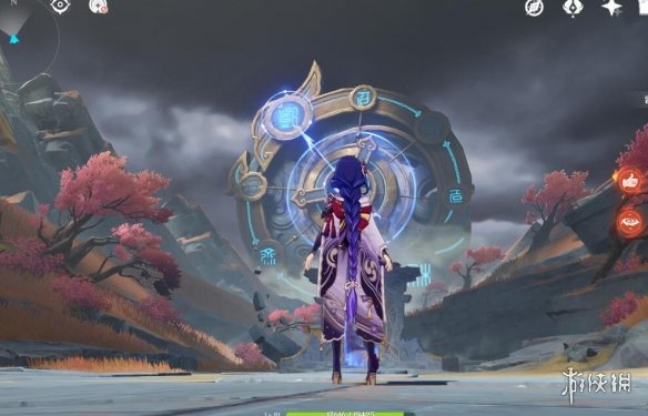 然後把太威儀盤邊上的小樹苗砍掉,回頭開啟元素視野,會發現有兩個炸藥桶和一塊石頭,打碎,然後正向旋轉儀盤進入二號空間。