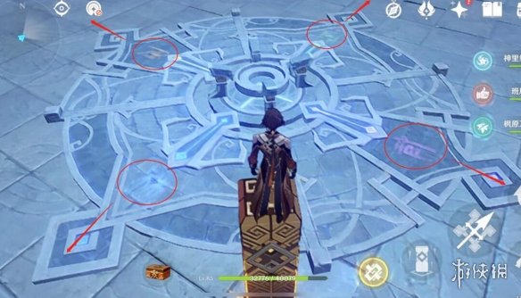 1-點亮地上的文字:在地上找到類似於“武”的文字,踩上去點亮文字,如果踩錯會受到傷害(套盾可免疫傷害)。