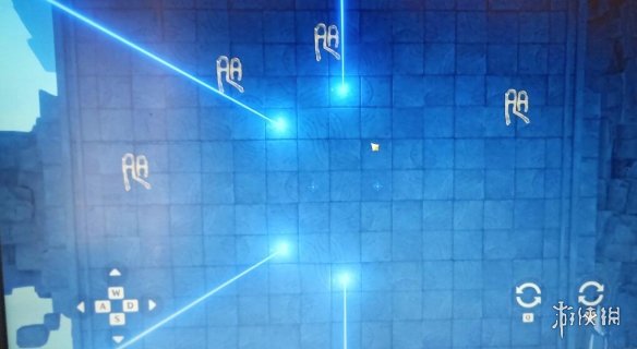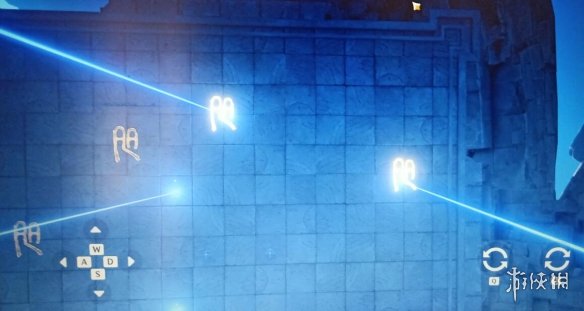操作光線機關將四個字元點亮即可完成,Q是逆時針,E是順時針,看準字元的距離選擇恰當的光線即可。