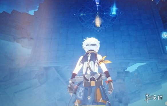 四個字元全部解鎖後會指向一個平台,派蒙會提示過去,通過傳送通道過去即可進入對話。