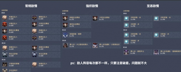 部分怪物陣容,每次都不一樣,基本只需要注意破盾,問題就不大