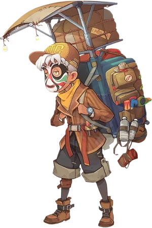 神秘商人會背一個大包帶著猴子面具,還是比較好找的。