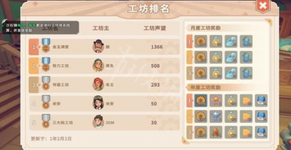 月末、年末還會進行工坊排名,訂單越多,累積的工坊聲望越高,排名就會越靠前。