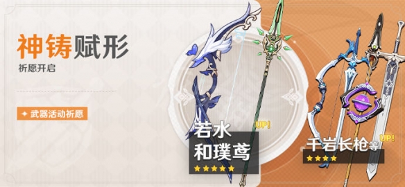 活動期間,限定五星武器「弓·若水」、五星武器「長柄武器·和璞鳶」的祈願獲取概率將大幅提升!