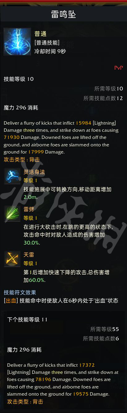 雷鳴墜沒什麼好說的,這個傷害聊勝於無。 實戰可以攢在風息獅子吼中打點傷害,也可以當成位移用。