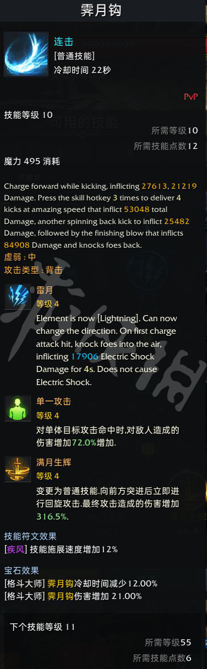 沒什麼其他選擇。只有這一種點法。滿三腳架的疾月傷害是不遜於方天擊的。格鬥的主力輸出技能。