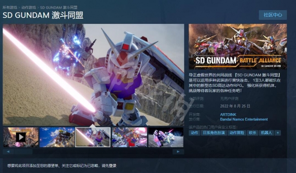 以上就是SD高達激斗同盟發售時間介紹的內容了,更多遊戲相關資訊攻略請關注,我們將會第一時間更新最全的內容幫助大家了解該遊戲,一起來看一下吧。