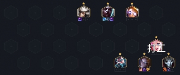 開局優先拿腰帶盡可能多做打工裝備幫助前期連勝,也可以搶攻速和大劍,為合成輸出的裝備做准備。前期有傳送門直接合給前排保證過渡平滑。