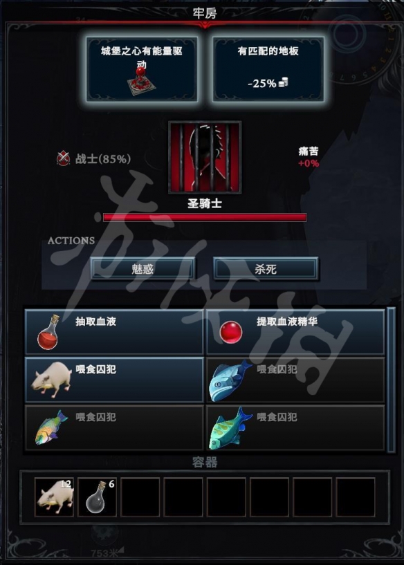 重點補充:抽取血量時一律推薦滿血,痛苦值低於50%進行抽血,不要賭,已經有不少朋友把囚犯抽死了。