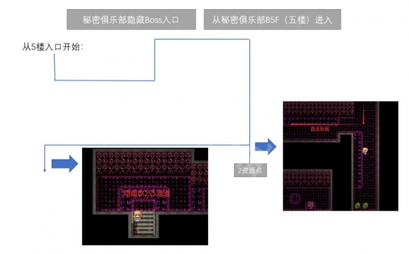 這個boss難以找到的原因是boss本身在6樓,它所對應的隱藏通道入口在5樓道中,如果你進入副本且直奔表Boss是很難找到的,大致路線如下: