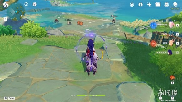 來到地中之鹽西邊,進入丘丘人警戒範圍,然後等一會(等那個丘丘人挖火史萊姆)。