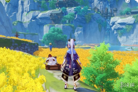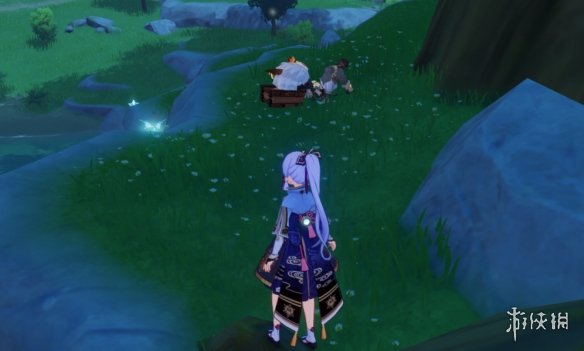 從傳送點向左上角飛,在梯田上躺著,注意:這個點的大偉丘可以會卡到牆裡,需要用角色e一下,或者重擊一下,仔細判斷,這個點我被卡過好幾次。