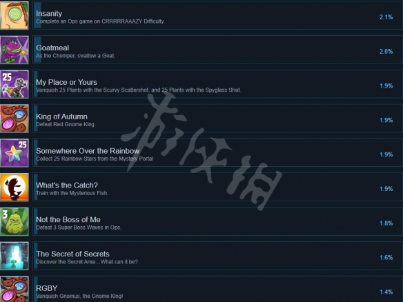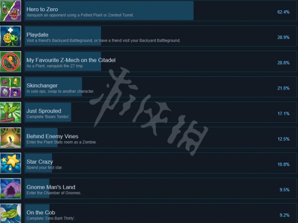 植物大戰僵屍花園戰爭2豪華版成就有哪些?這個版本中共有63項,有些玩家還不是很了解,這里給大家帶來了植物大戰僵屍花園戰爭2豪華版全成就列表一覽,一起來看下吧。