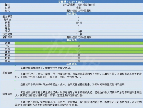 以上就是吸血鬼倖存者聖魔杖合成方法與屬性介紹的內容,想要了解更多相關攻略的小夥伴可以持續關注遊俠網,這里每天會為大家推送最新最全的攻略,一定不要錯過哦。