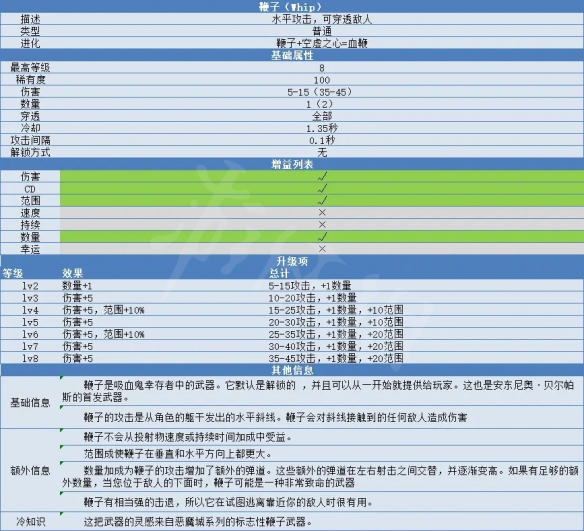 以上就是吸血鬼倖存者鞭子屬性介紹的內容,想要了解更多相關攻略的小夥伴可以持續關注遊俠網,這裡每天會為大家推送最新最全的攻略,一定不要錯過哦。