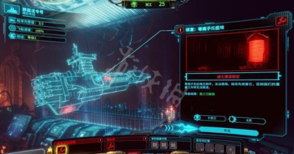 工廠是盧內特的地盤,玩家可以通過和他交流來獲得資訊,左上角可以看到工廠的施工率,也就是建造速度,通過增加奴工可以加快建造,一開始需要先修復反應堆、強化室和占卜室來解鎖功能。