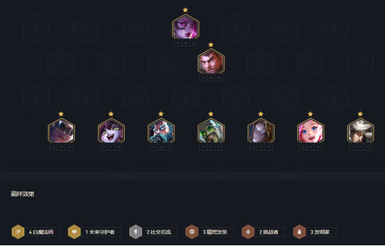 前中期過渡體系,比較推薦圍繞發明家羈絆,搭建過渡體系,體系中費卡不固定,我們可以選用更高費的同羈絆費卡代替,體系優先湊出3發明,隨後補加過渡體系主C螞蚱,後續補加輔助費卡炸彈人以及發條,湊出2黑魔2即可以及2精密發條羈絆即可。