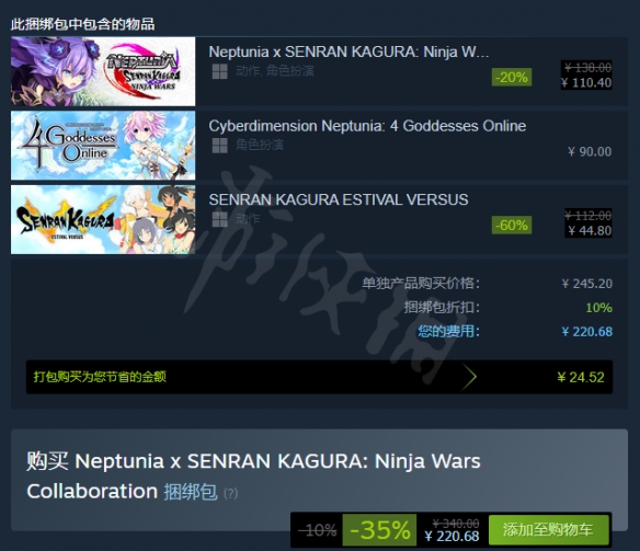 另外,本作發售時還推出了一個限時捆綁包,內含《閃亂忍忍忍者大戰海王星少女們的響艷》、《四女神ONLINE:網路次元海王星》和《閃亂神樂:少女們的選擇》三款游戲。捆綁包目前享有-35%優惠,售價220.68元,原價340元。