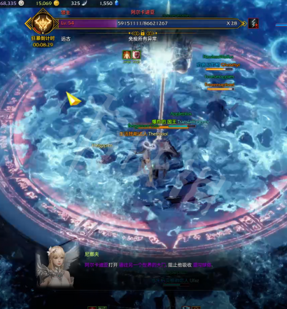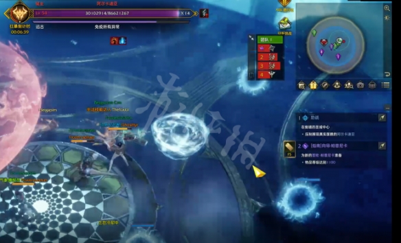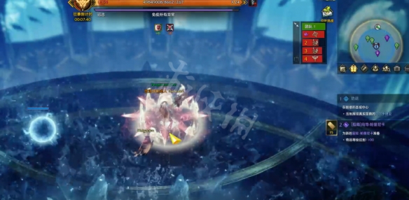其中所處boss中間的圈是一定的範圍內隨機刷新, 所以被分配到boss中心圈的人要多多注意。一旦沒有站到圈上會死亡,但是不會團滅,隊友可以繼續打。