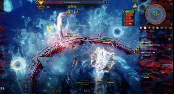 boss在下降到-定血之後返回中間並且武器圍繞boss旋轉,這個時候要到一開始說好的站位上,每人一個圈。