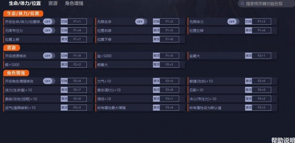 3.開啟修改器各主初始項再使用各子修改項[無主初始項則不用開啟][主初始項:如開啟...修改]。