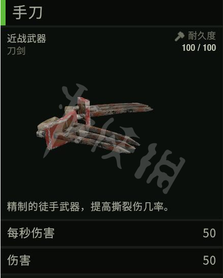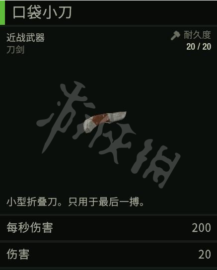 然後是爛大街的口袋小刀,這玩意到處都能掉,甚至搜刮屍體都能經常看見。傷害是真不行,比徒手高不了多少,比徒手的好處恐怕是能放血吧。
