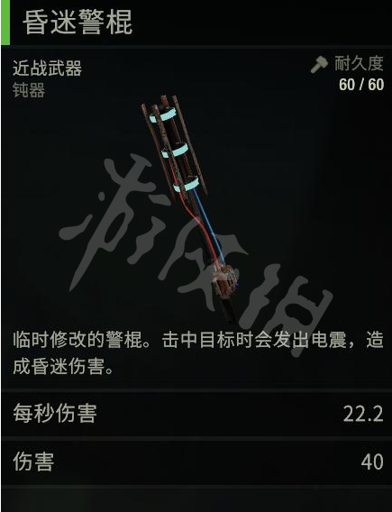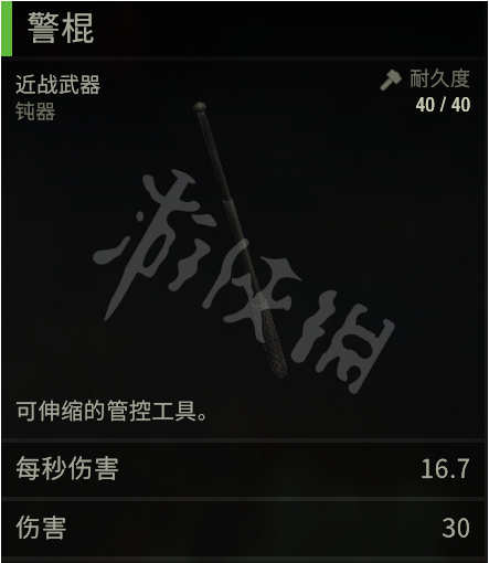 警棍和昏迷警棍基本沒什麼傷害,耐久也一般。但是昏迷警棍的每一擊都能必定造成擊倒或者麻痹,這讓它在遭遇近戰殭屍群的時候有些用處。不過盡管如此,我的建議也是沒必要刻意留著昏迷警棍,畢竟傷害偏低作為鈍器且不能造成流血導致在打不能被擊倒殭屍的時候比較吃力。