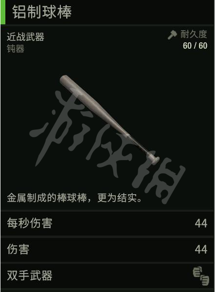 球棒和狼牙棒由於是木質的所有耐久比較低。鋁制球棒相比耐久更高,但是重量也並沒有增加,但同時鋁制球棒的傷害與球棒相差無幾,與狼牙棒差太多了。