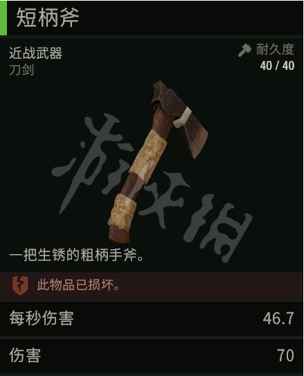 短柄斧重量比較重,但傷害更高,耐久度也相對更高(雖然也不算特別耐久)。