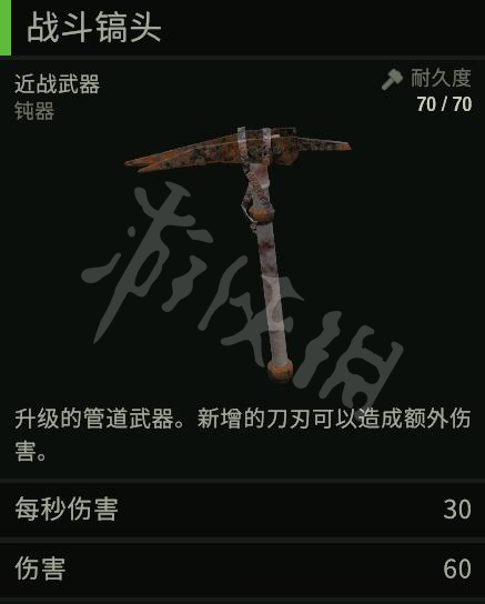 管道和戰鬥鎬頭作為金屬製品,耐久相對高了不少,戰鬥鎬頭甚至相比管道增加了少量的耐久。