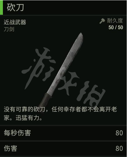武士刀怎麼說呢,在聯合城裡武士刀的屬性比砍刀強,但是在劫後餘生里武士刀的傷害是跟砍刀一樣的。再說一遍,近戰武器的秒傷意義不大,畢竟取決因素還在於出手速度。因此可以把武士刀看成是另一種形式的砍刀罷了。