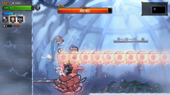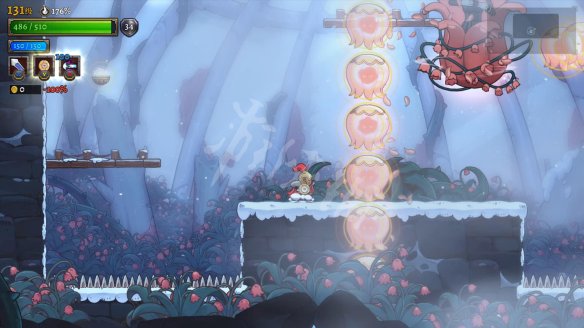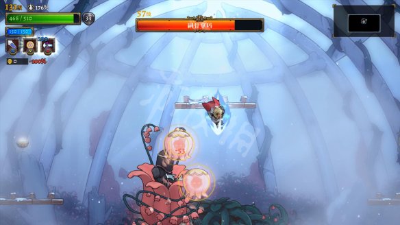 這個BOSS釋放由下至上的花朵可以通過迴旋踢躲避。