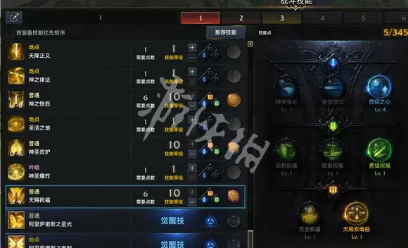 天賜祝福:buff加回信仰值技能:三腳架選擇信仰之心,勇猛祝福,天賜安魂曲,符文帶豐富。天賜安魂曲我點了主要混沌小怪清場。