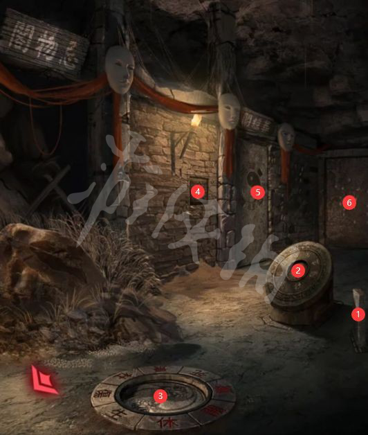 回到第一個場景1-1處,分別在盤子內放上對應數量的饅頭,即可解開機關