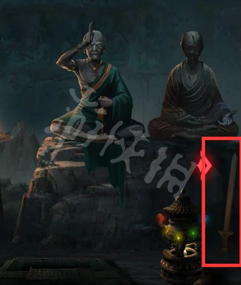 劇情後發現2-4泥人手裡的劍已經掉落在地上,撿起來,這是用來供奉男童子用的