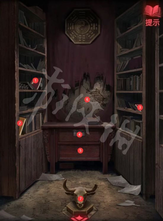 4-1 4-2 4-3的書籍都是重要的解密信息 指向4-4上面的抽屜