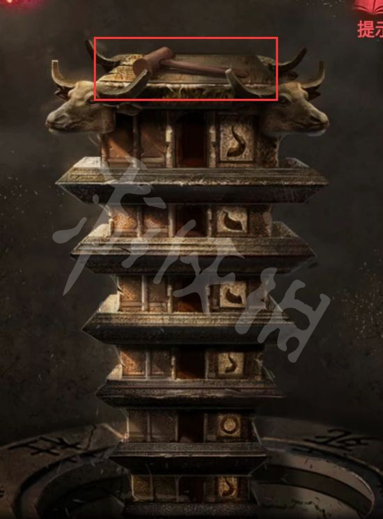 3-3處按線索的順序依次輸入後解開機關,同時出來一座塔,把塔頂的錘子拿走,可以留意下塔右側的圖標