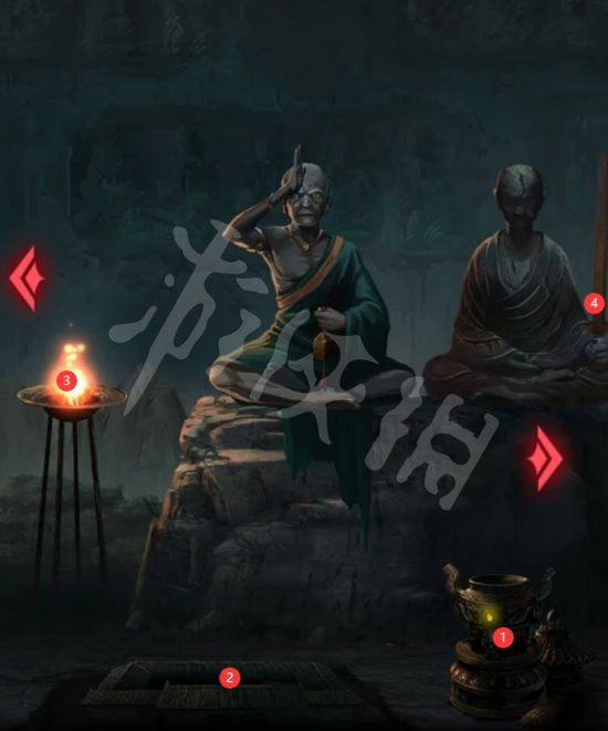 至此香爐的所有材料都齊全了,回到第二個場景調查香爐,把所有的材料都奉上